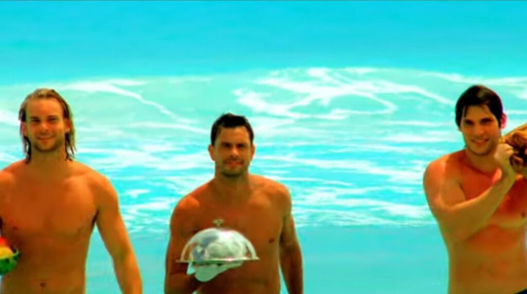 Kıyafet Seçimi (Denim Şortlar): Erkeklerin üst vücutlarının tamamen açıkta bırakılması; bedenin bir "sergileme nesnesi" ve "doğal bir güç sembolü" haline getirildiğinin temel göstergesidir.